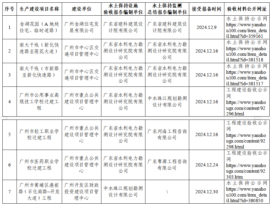 在线博彩平台关于2024年12月生产建设项目水土保持设施自主验收报备公示