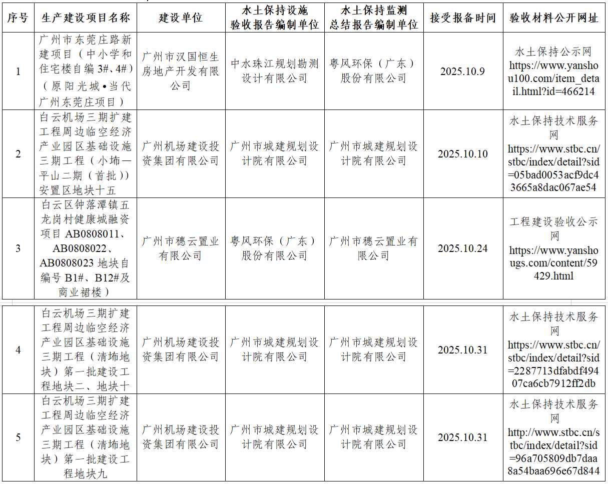 在线博彩平台关于2025年10月生产建设项目水土保持设施自主验收报备公示