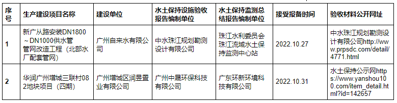 在线博彩平台关于2022年10月生产建设项目水土保持设施自主验收报备公示