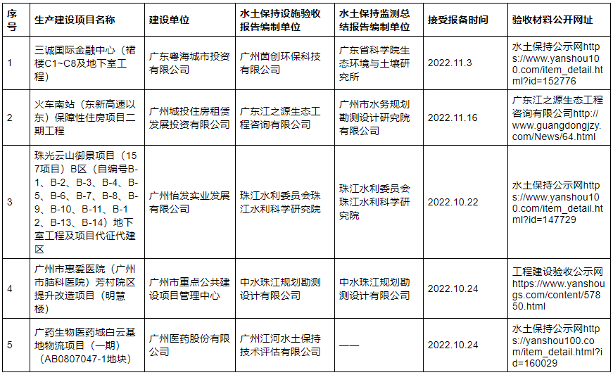 在线博彩平台关于2022年11月生产建设项目水土保持设施自主验收报备公示