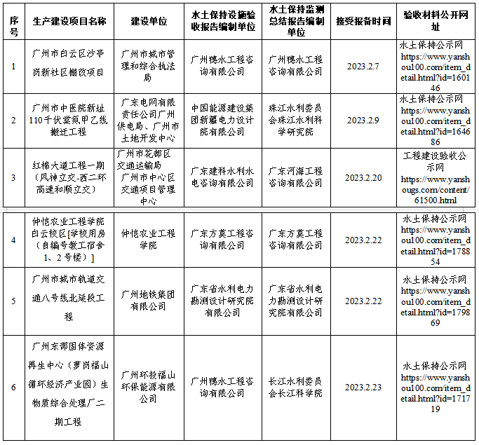 在线博彩平台关于2023年2月生产建设项目水土保持设施自主验收报备公示