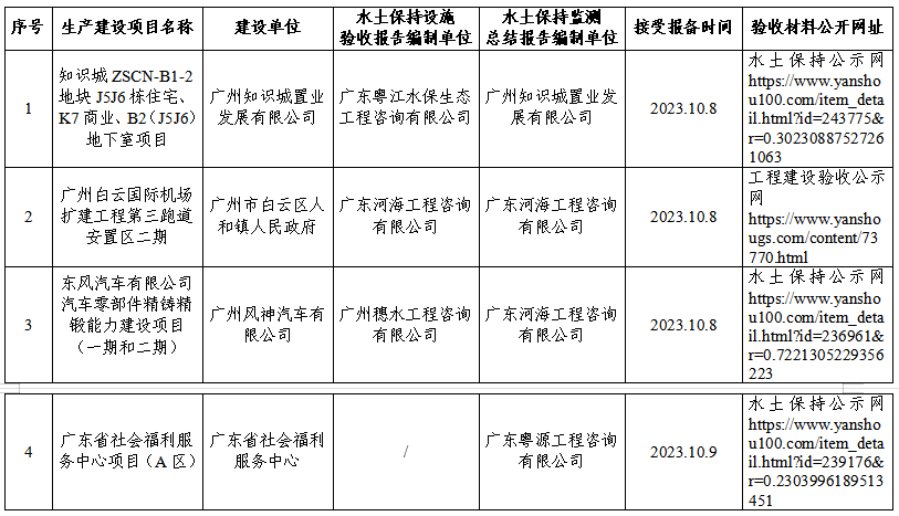 在线博彩平台关于2023年10月生产建设项目水土保持设施自主验收报备公示