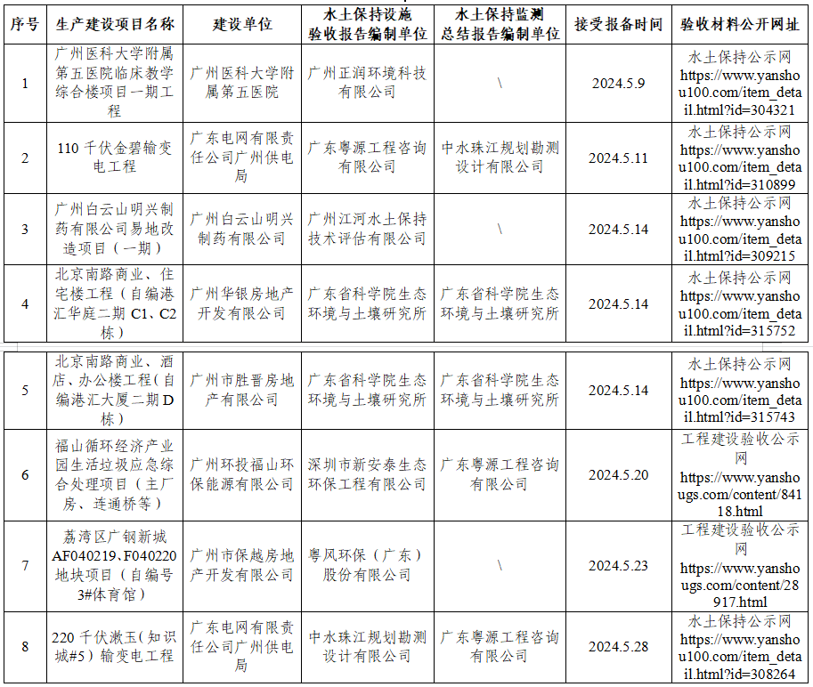 在线博彩平台关于2024年5月生产建设项目水土保持设施自主验收报备公示