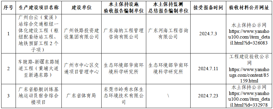 在线博彩平台关于2024年7月生产建设项目水土保持设施自主验收报备公示