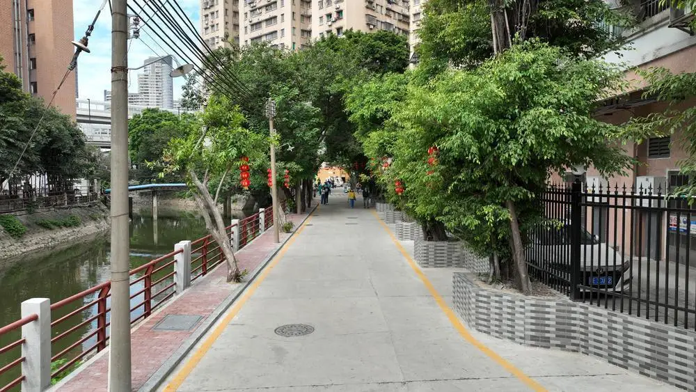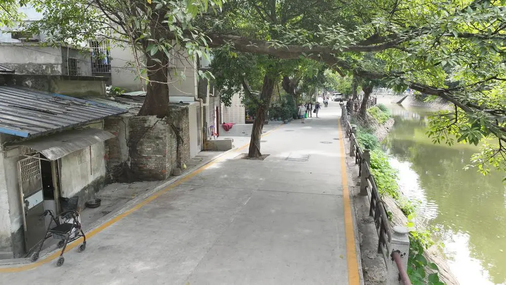 位于海珠区的马涌龙凤街道段,河涌两旁空间曾存在乱搭建、占道经营等问题。经过持续整治,目前马涌龙凤街道段河涌两旁空间已得到疏通,结合微改造整饰工程的实施,变身“生态休闲带”。