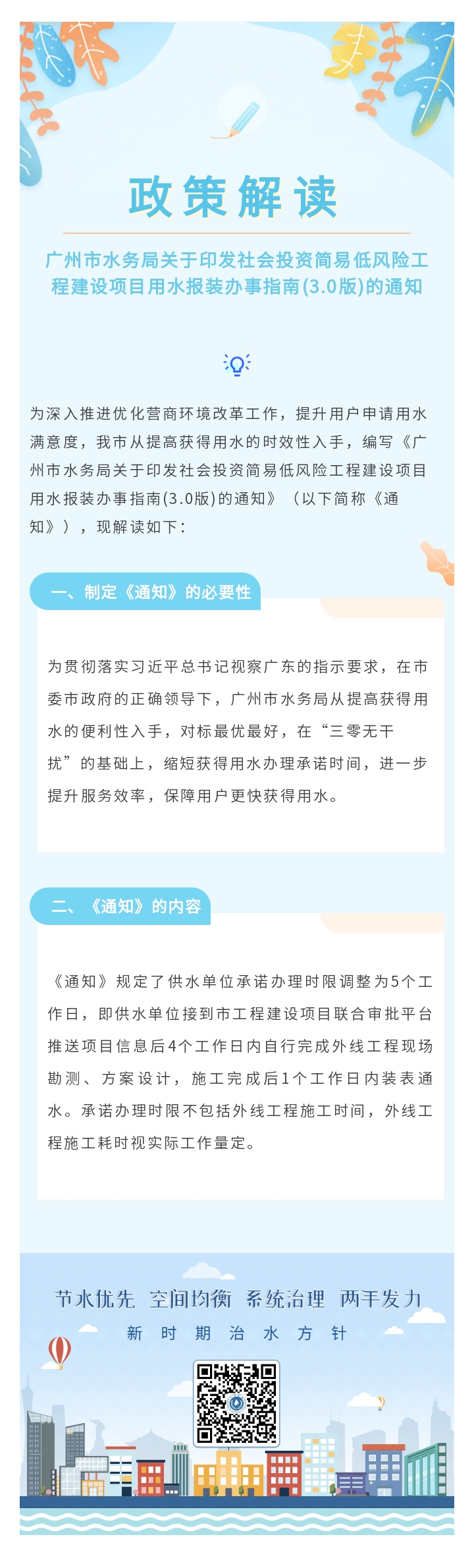【一图读懂】在线博彩平台关于印发社会投资简易低风险工程建设项目用水报装办事指南(3.0版)的通知政策解读